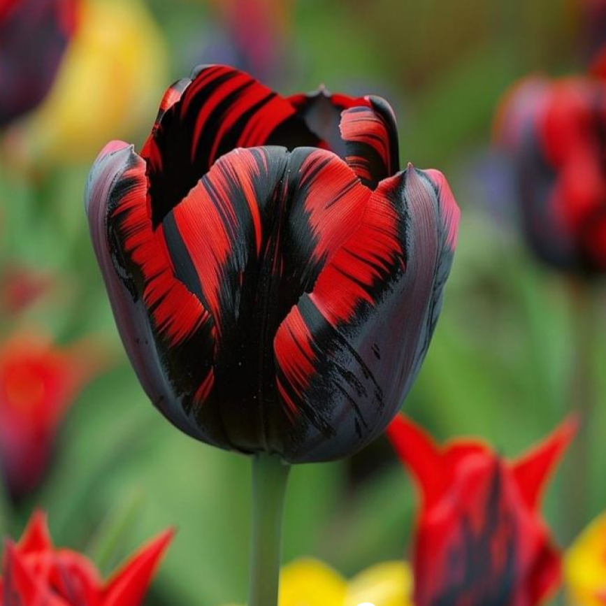 - Цвет: глубокий черный с красными оттенками. Этот уникальный окрас делает тюльпан настоящим украшением весеннего сада.